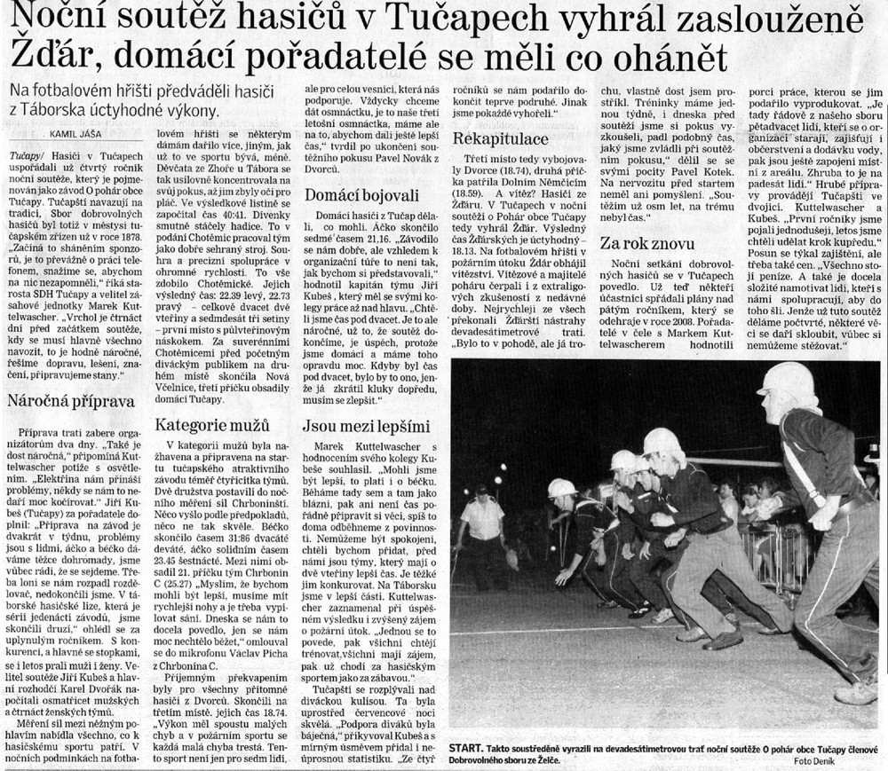 :: Noční soutěž hasičů v Tučapech (Táborský deník 28.7.2007)